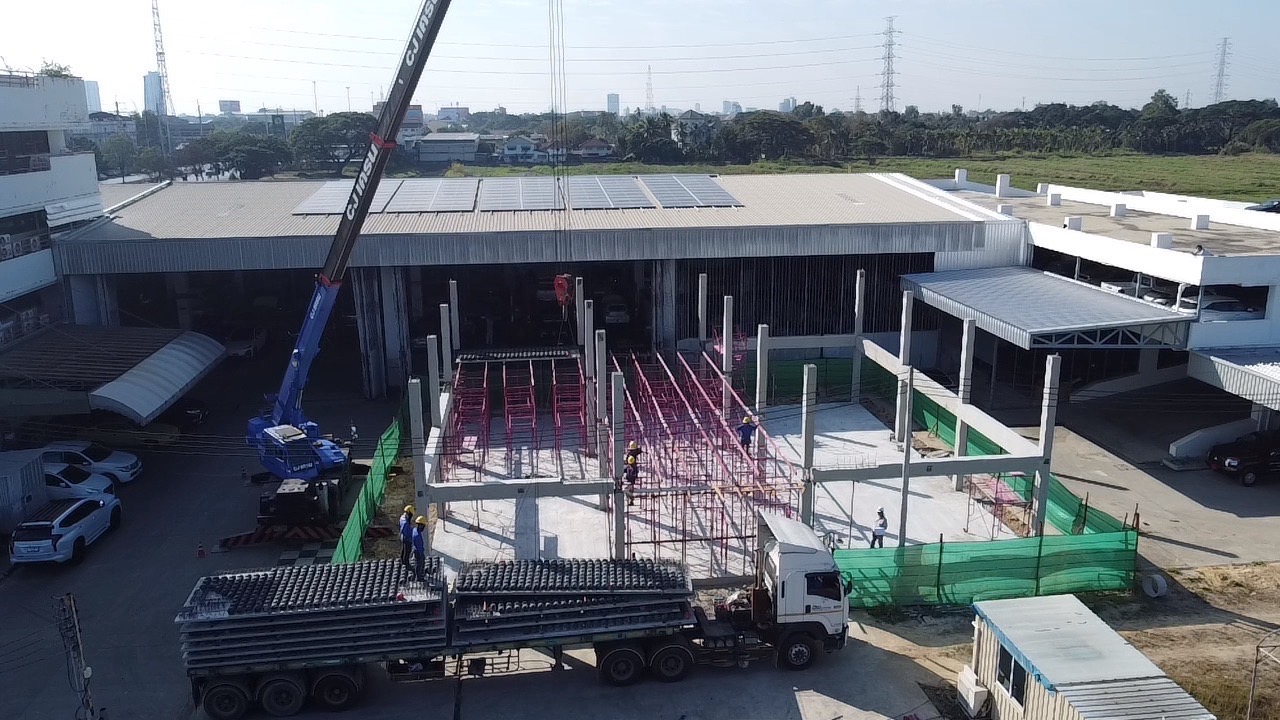 This Mitsubishi dealership project comprises a full showroom and two-story office complex. The structure was designed using a hybrid precast system—combining factory-produced columns and beams with the semi-precast BubbleDeck slab system. This integration offered not only engineering efficiency but also exceptional speed, quality control, and installation predictability.