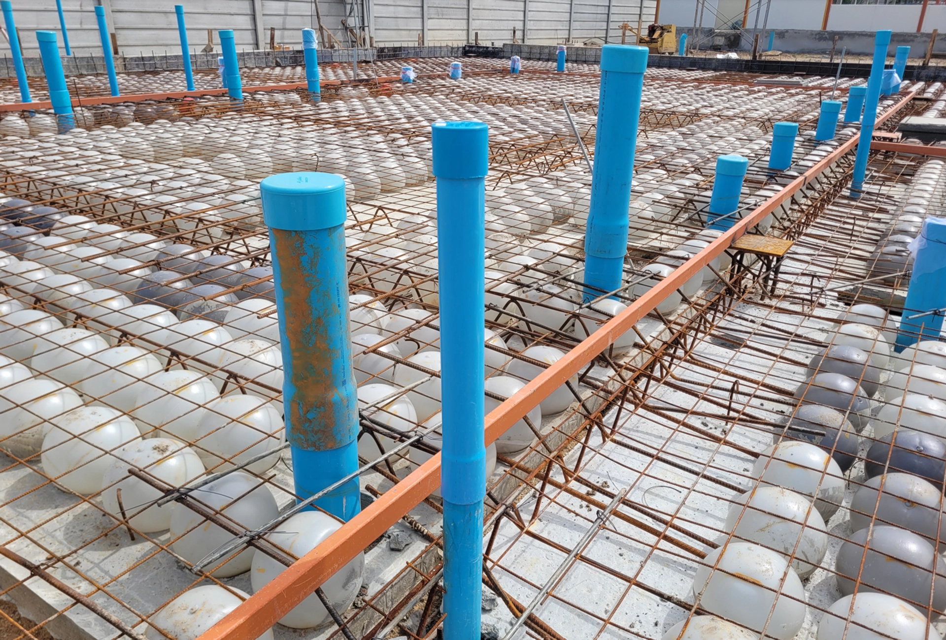Stact delivered a BubbleDeck-based slab system with integrated drop panels and adaptable layout zones to support MEP-intensive areas such as toilets and wet zones. The system maintained strict slope accuracy and pipe clearance while reducing on-site adjustments. Its semi-precast nature allowed for faster construction, less wet work, and easy adaptation to site-specific septic tank placement — making it ideal for PTTOR’s goal of scalable, high-quality, sustainable facility rollout.